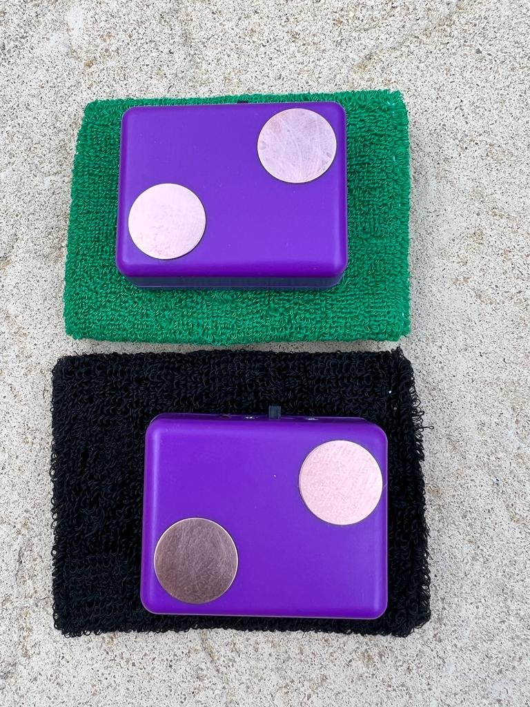 Two Basic Zappers with Copper Discs and elastic wrist band..